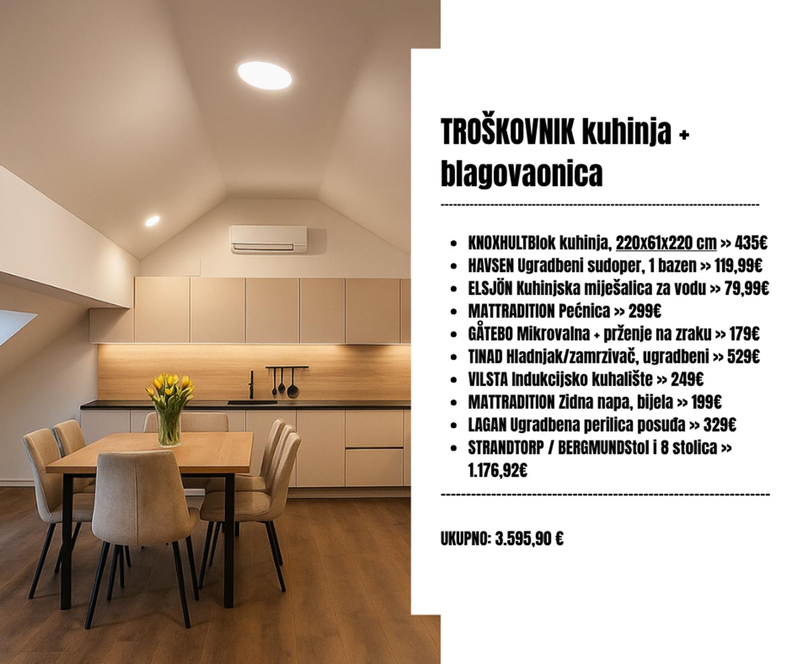 - mjesto za kuhinju i blagovaonu